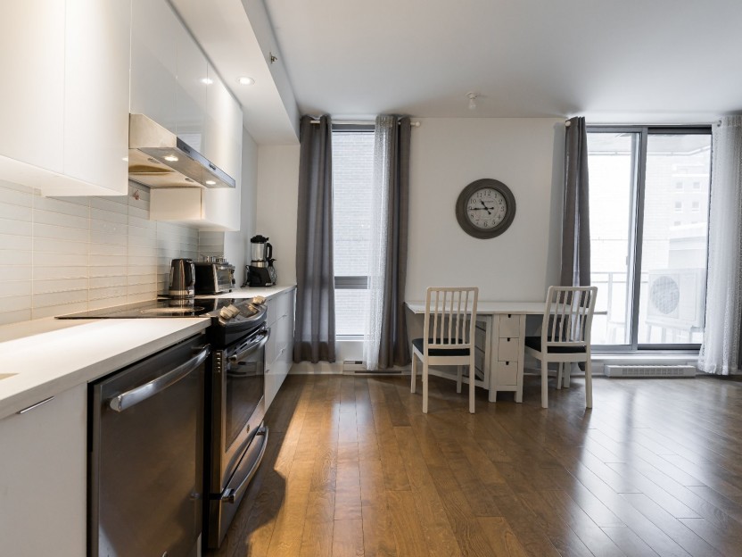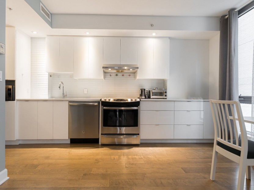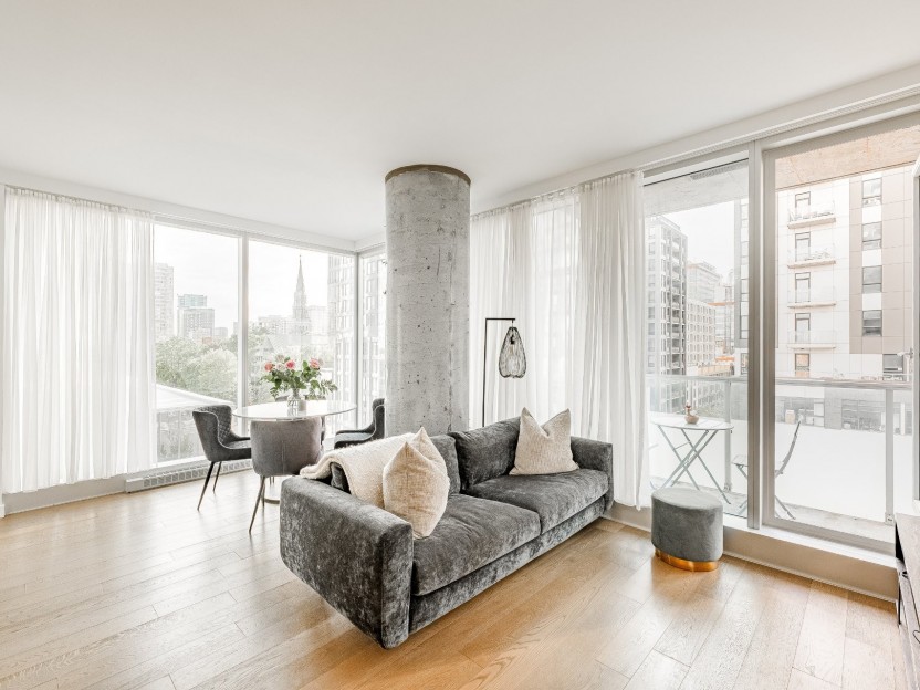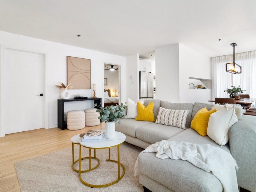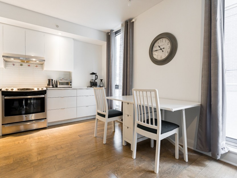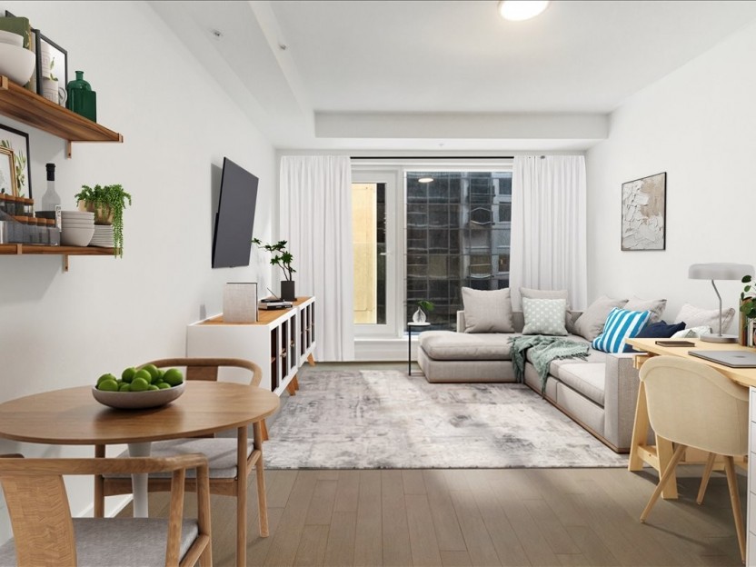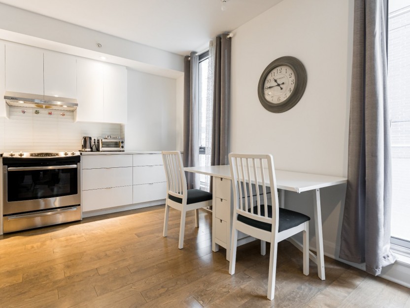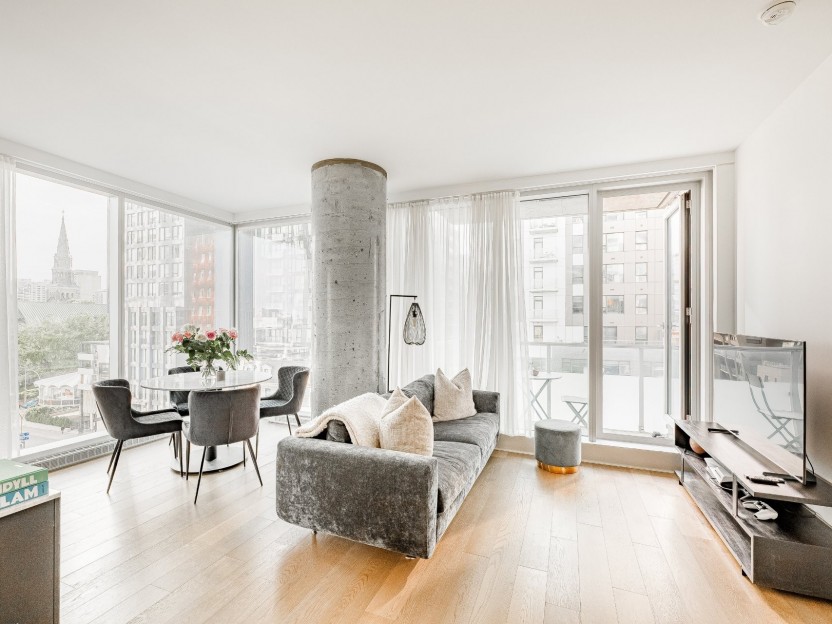 Stylish partially-furnished corner unit at YUL with 2 bedrooms, 1 bathroom, and...
